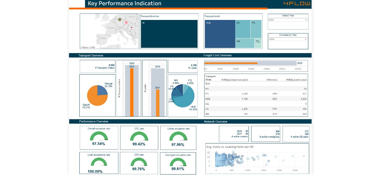 Le logiciel iTMS de 4flow affiche différents chiffres clés dans un seul système avec des tableaux de bord personnalisables pour faciliter la communication entre les différentes parties prenantes.
