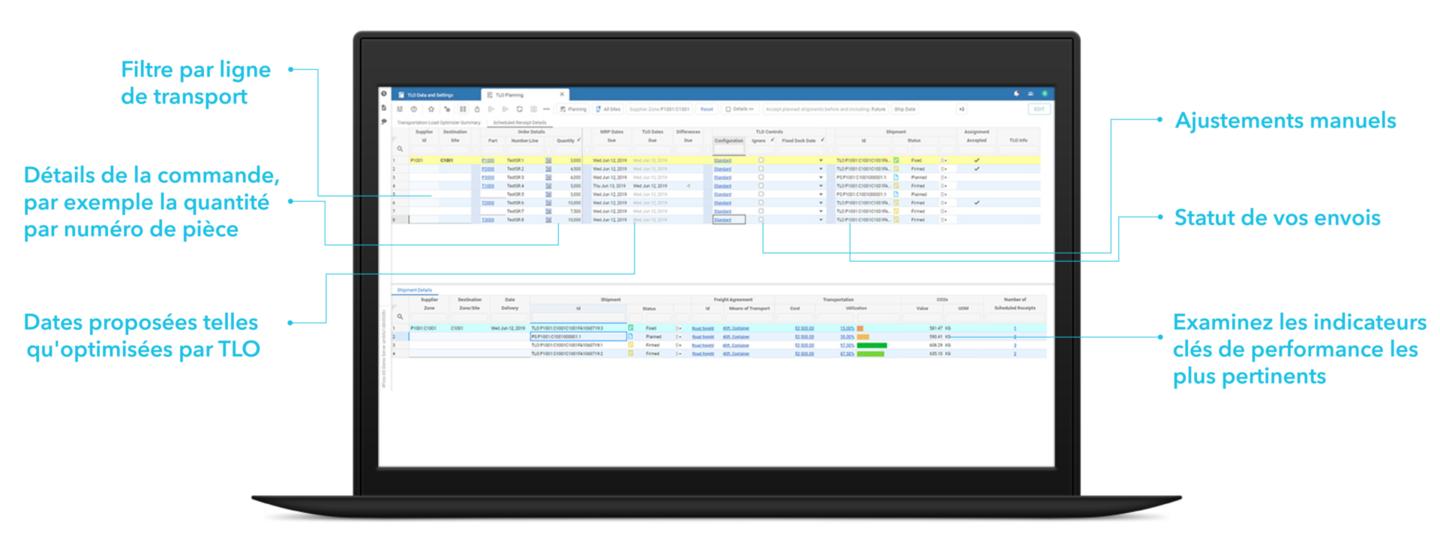 Les principales fonctionnalités de TLO offrent aux planificateurs une visibilité et un contrôle complets des résultats