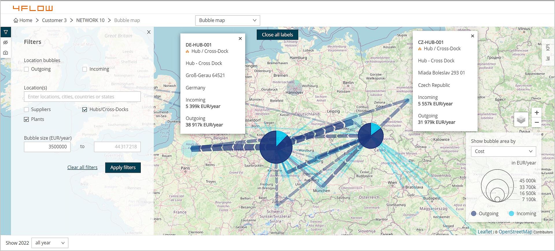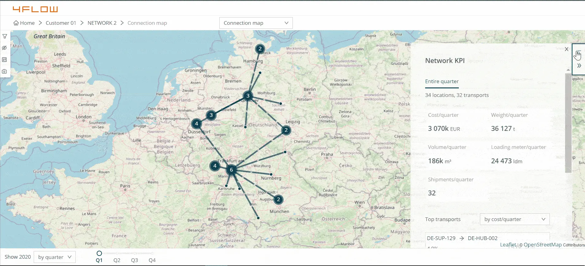 4flow VIA® aide les entreprises à examiner les structures de base de leurs réseaux supply chain et à prendre en compte les changements tels que la localisation des fournisseurs et la volatilité des expéditions au fil du temps.