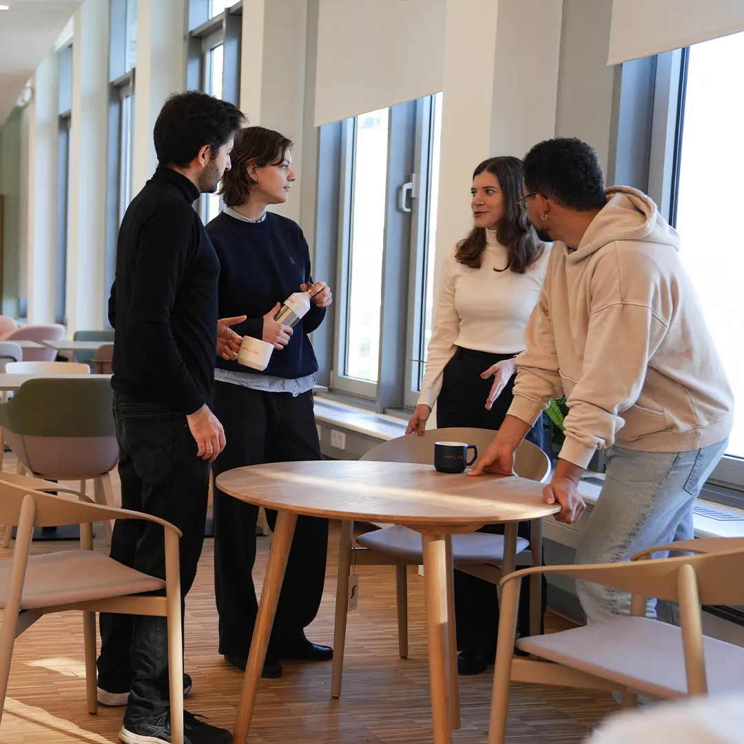 Gérer activement la santé de nos collaborateurs est un autre pilier de notre modèle visant à soutenir notre personnel, qui met à leur disposition des équipements de bureau ergonomiques, des fruits et légumes biologiques, de l’eau et des jus de fruits gratuits, ainsi que des séances d’information sur des sujets liés à la santé. Nous mettons également l’accent sur une alimentation équilibrée lors de nos petits-déjeuners hebdomadaires. 4flow promeut également le sport comme contrepoids au travail de bureau sédentaire. À ce titre, nos collaborateurs participent régulièrement aux courses d’entreprise, au cours desquelles 4flow parraine les t-shirts d’équipes et les frais d’inscription. Notre siège de Berlin, en Allemagne, propose également une salle dans laquelle nos employés peuvent faire de l’exercice indépendamment ou avec un professionnel/instructeur.
